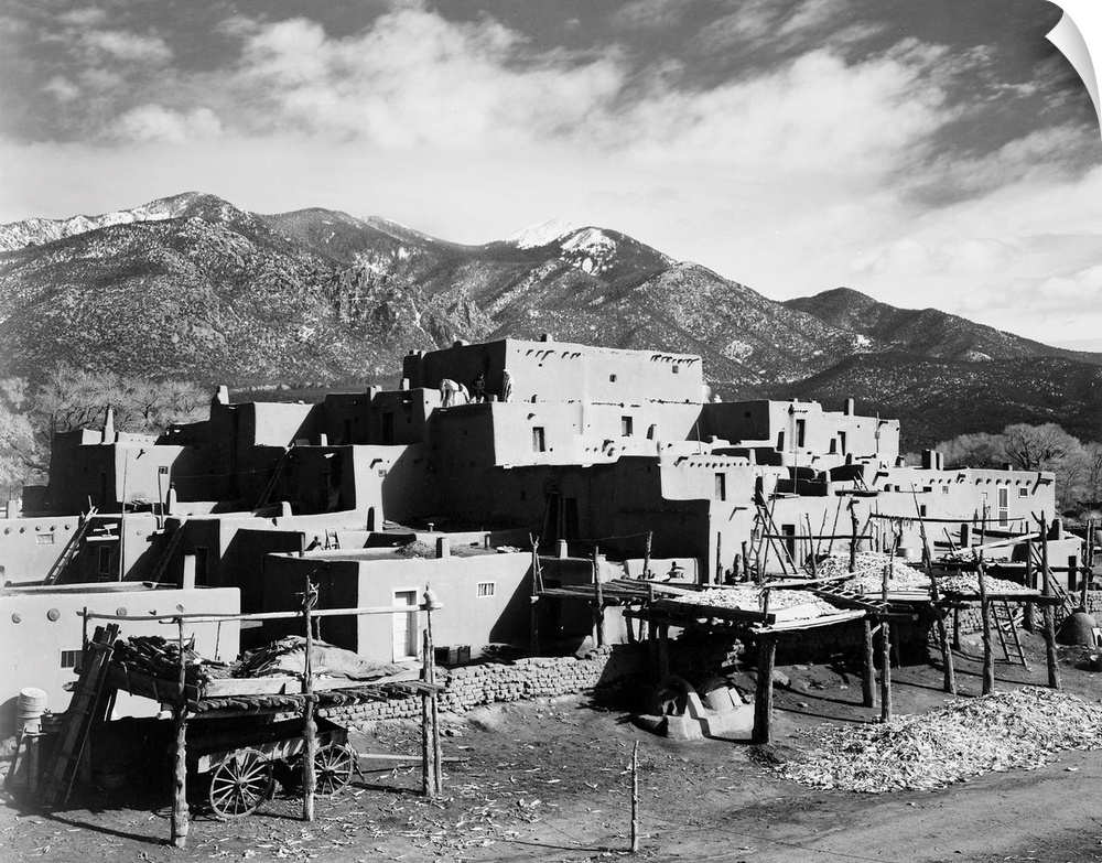 <p>Taos Pueblo, New Mexico, 1941, full view of city, mountains in background.</p>
