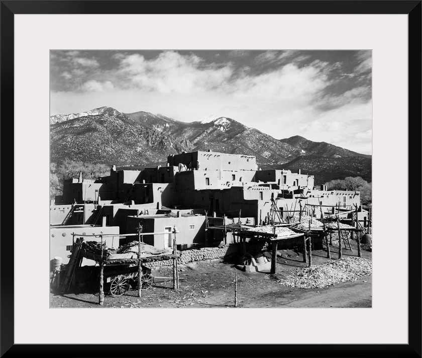 <p>Taos Pueblo, New Mexico, 1941, full view of city, mountains in background.</p>