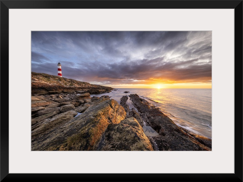 <p>Tarbat Ness Lighthouse at sunrise, Moray Firth, Portmahomack, Highland, Scotland, April 2024</p>