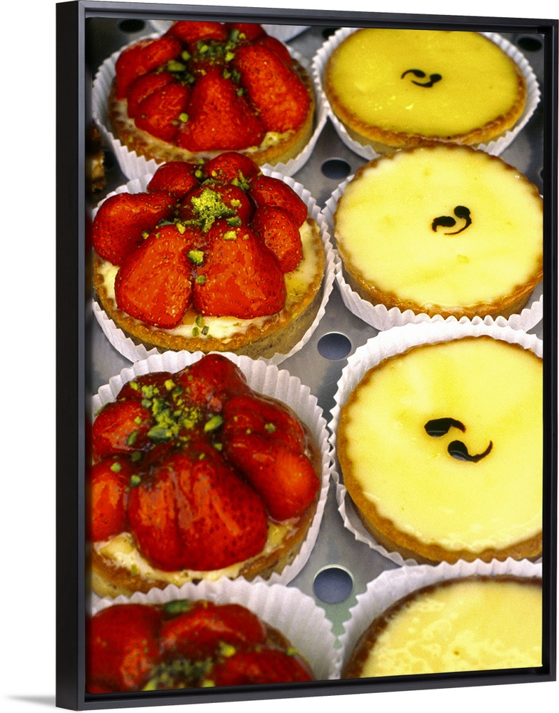 <p>France, Paris: pastry shop window with strawberry and lemon pastries</p>