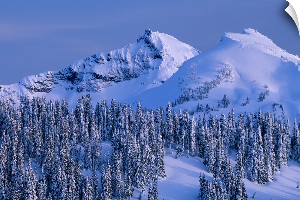<p>Tatoosh Range and snow covered trees, Mount Rainier National Park, Washington.</p>