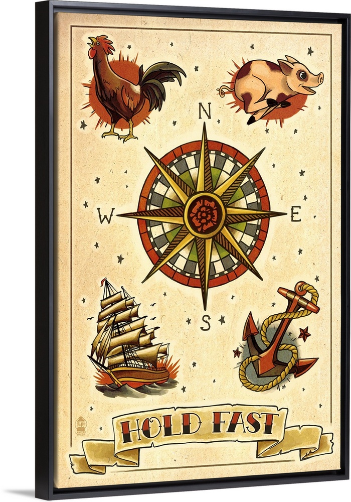 <p>Retro stylized art poster of vintage sailor tattoo art.</p>