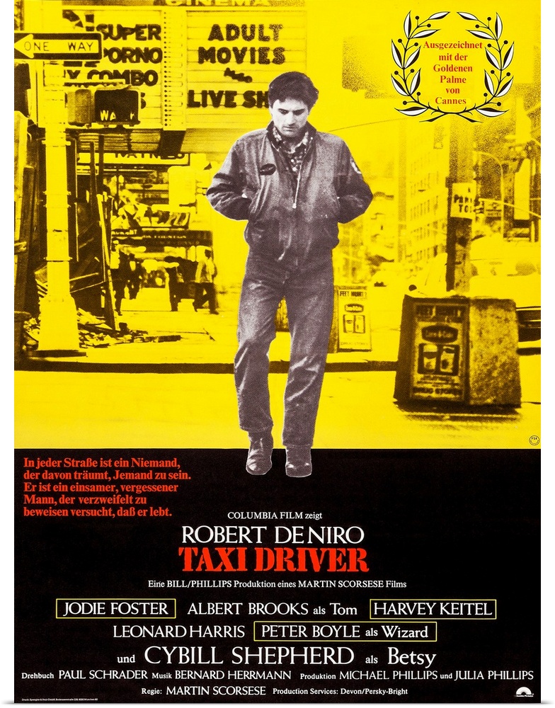 <p>Taxi Driver, German Poster Art, Robert De Niro, 1976.</p>