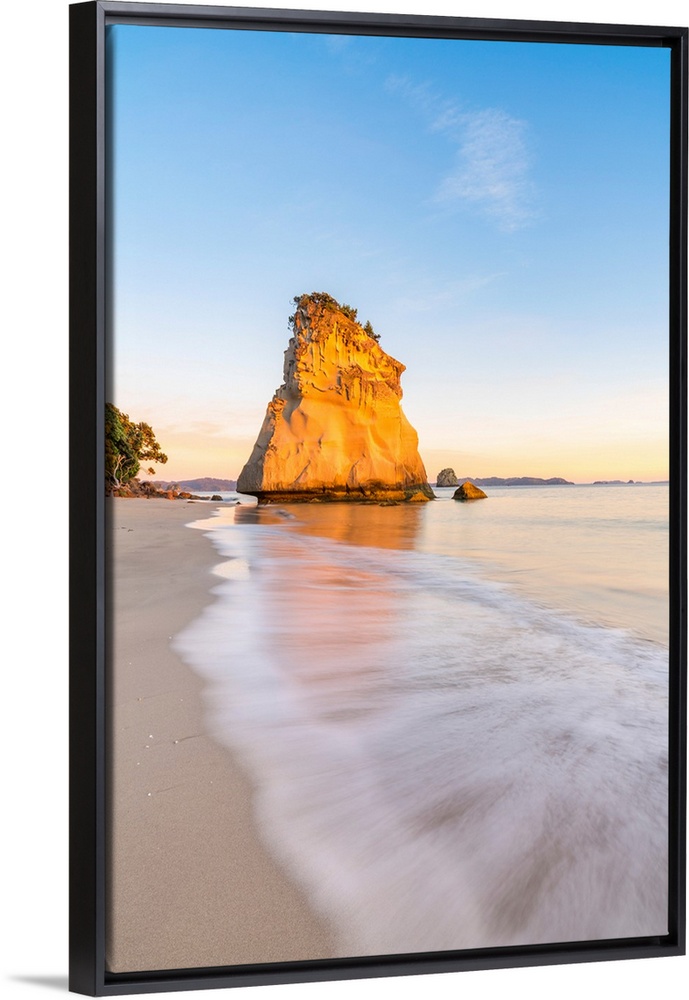 <p>Te Hoho rock at Cathedral Cove at sunrise. Hahei, Waikato region, North Island, New Zealand.</p>