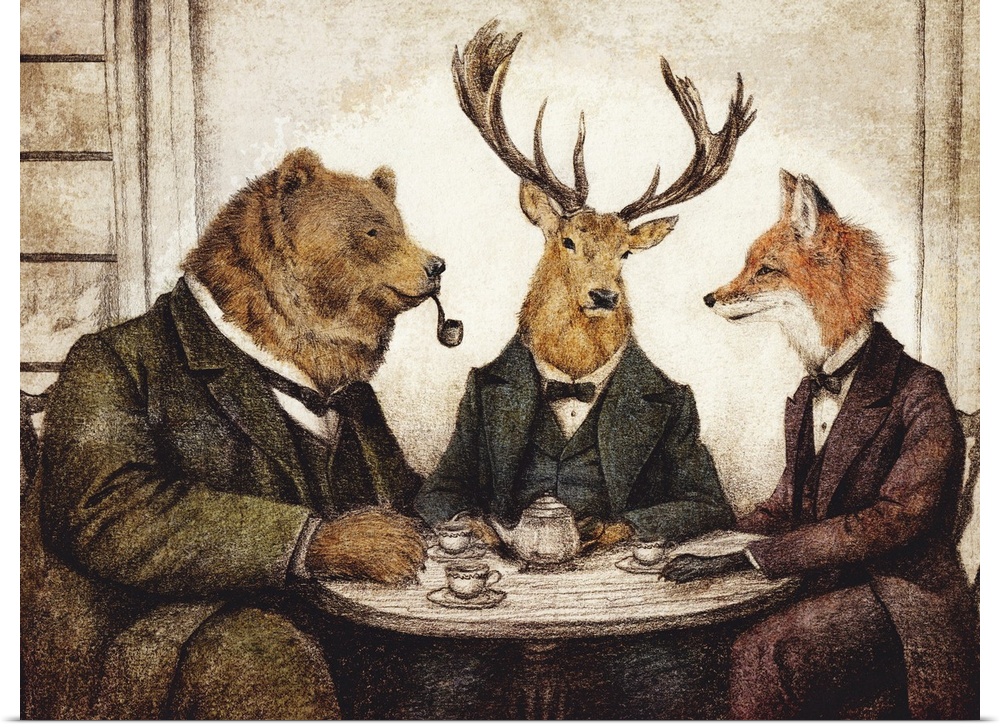 Art Contemporary Art Drawing Food and Drink Mike Koubou Man Cave Wall Art Wildlife Bear Deer Fox