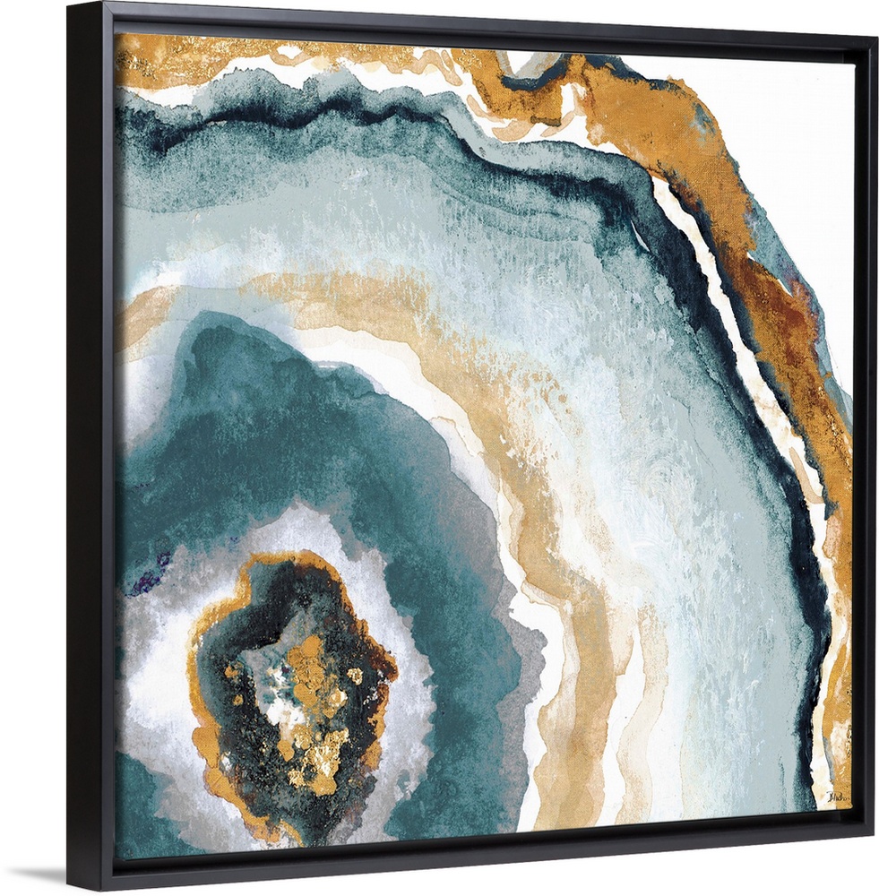 <p>This contemporary artwork offers the intricacies of sliced agate completed in watercolors with gold accents.</p>