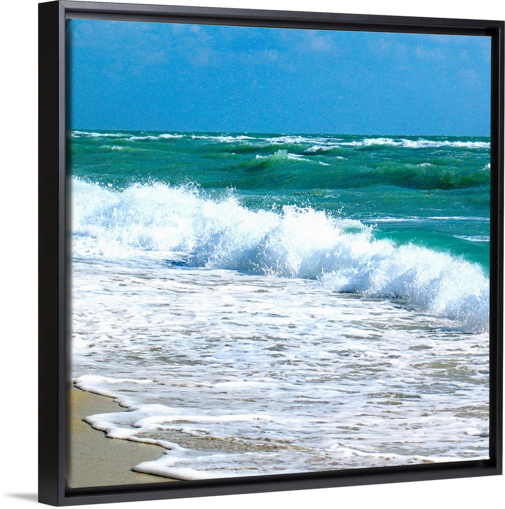 <p>Square canvas art of choppy crashing ocean waves.</p>