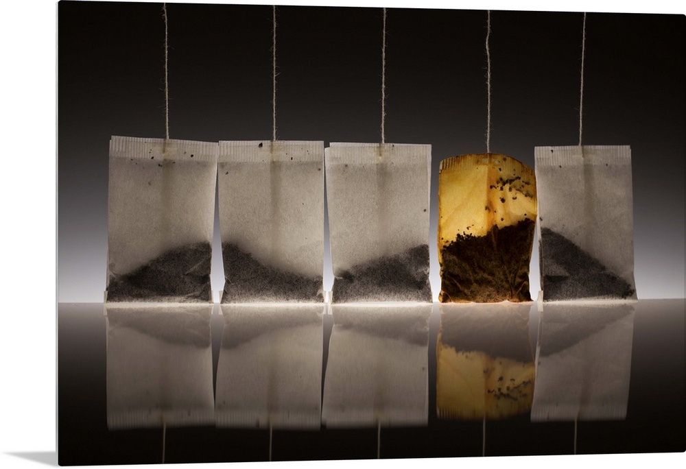 <p>A conceptual photograph of a teabags with the tea leaves arranged in such a way to resemble a mountain scape.</p>