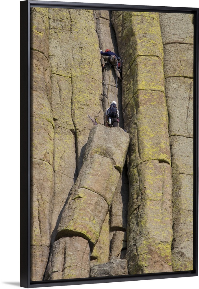 <p>Devils Tower National Monument, Wyoming, North America, USA. Technical Rock Climbers, on the Durrance Route, Climbing Devils Tower Columns.</p>