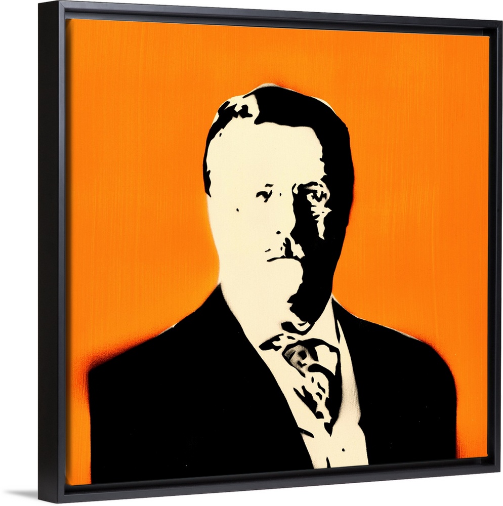 <p>Square spray art of Teddy Roosevelt on a bright orange background.</p>