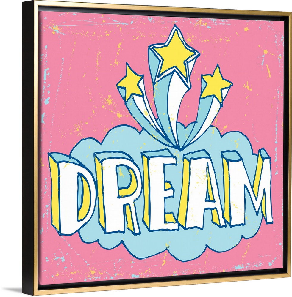 <p>The word "Dream" handwritten in a cloud with stars on a light blue background.</p>