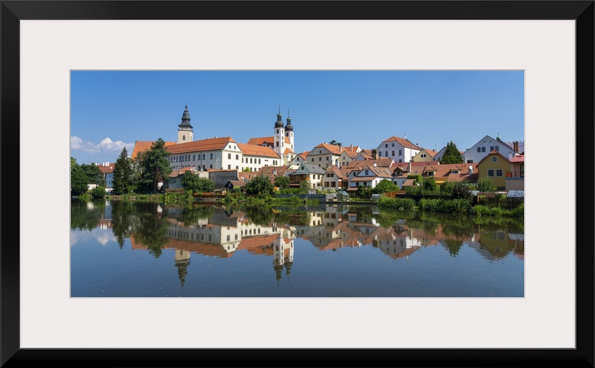 <p>Telc Chateau reflected in Ulicky pond, UNESCO, Telc, Jihlava District, Vysocina Region, Czech Republic</p>