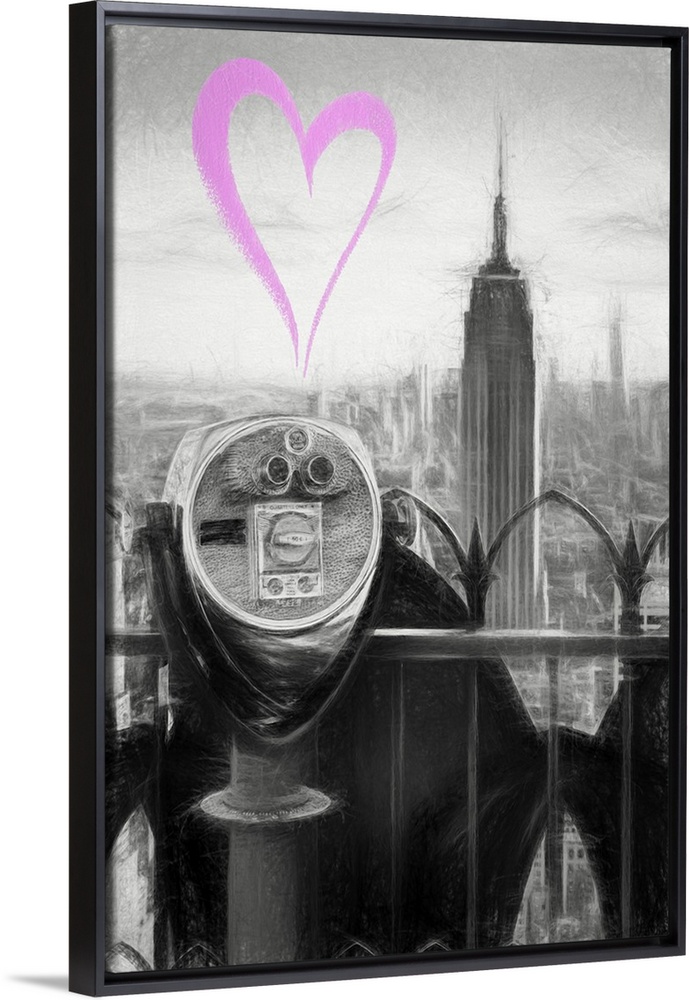 <p>Fusing of oil painting textures and techniques with a digital black and white photograph of a New York cityscape with a big, pink heart. From the Luv Collection.</p>