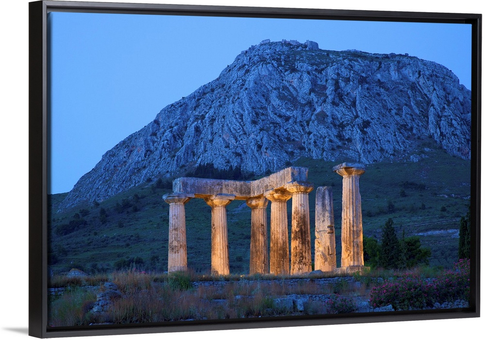 <p>Temple of Apollo at Dusk, Ancient Corinth, The Peloponnese, Greece, Southern Europe.</p>
