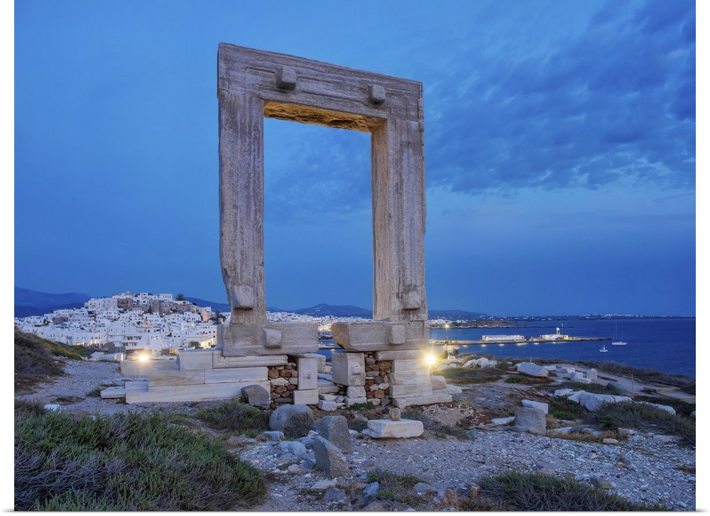<p>Temple of Apollo at dusk, Chora, Naxos City, Naxos Island, Cyclades, Greek Islands, Greece, Europe</p>