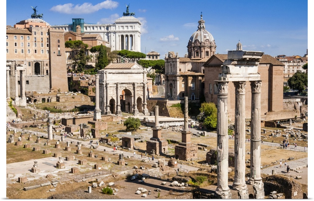 <p>Temple of Castor and Pollux, Arch of Septimius Severus, Roman Forum, UNESCO World Heritage Site, Rome, Lazio, Italy, Europe</p>