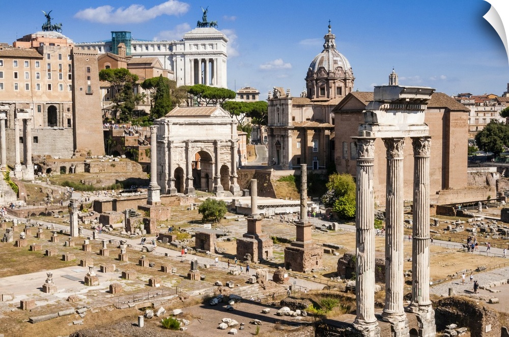<p>Temple of Castor and Pollux, Arch of Septimius Severus, Roman Forum, UNESCO World Heritage Site, Rome, Lazio, Italy, Europe</p>
