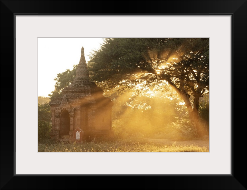 <p>Temples at sunset with sunbeams, Bagan (UNESCO World Heritage Site), Mandalay region, Myanmar (Burma), Asia.</p>