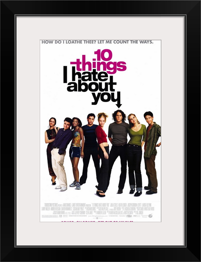<p>This Bill Shakespeare guy must be raking in the royalties, dude! The Bard is once again adapted for teens in this update of his very un-PC comedy The Taming of the Shrew. Obstetrician and single dad Walter (Miller) has seen enough teen pregnancies to fear all adolescent boys who show up with flowers. He decrees that his ultra-popular daughter Bianca (Oleynik) cannot date before her man-hating sister Kat (Stiles) does. Two lovesick suitors, vain Joey (Keegan) and sensitive guy Cameron (Gordon-Levitt), bribe new-kid-in-town Patrick (Ledger) to make advances on Kat in order to play jumpeth the maiden with Bianca. Kat and Patrick then engage in a duel of verbal thrusts and parries, gradually falling for each other. Incorporates some of Shakespeare's dialogue, but glosses over the more chauvinistic elements of his play.</p>