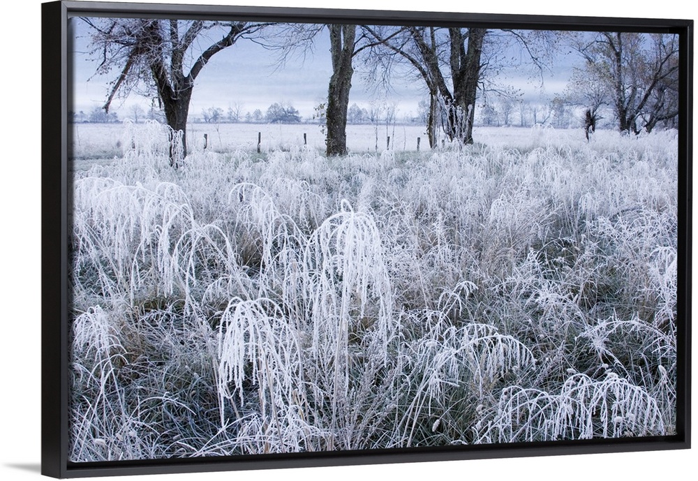 <p>Tennessee, Great Smoky Mountain National Park, Early morning frost in Cades Coves.</p>