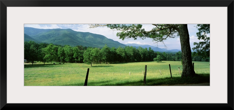 <p>This decorative accent for the home, office, or even mountain cabin shows a grass paddock on the edge of a forest in the Appalachian Mountains.</p>