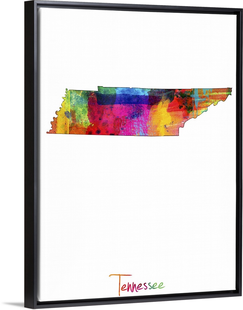 <p>Contemporary artwork of a map of Tennessee made of colorful paint splashes.</p>