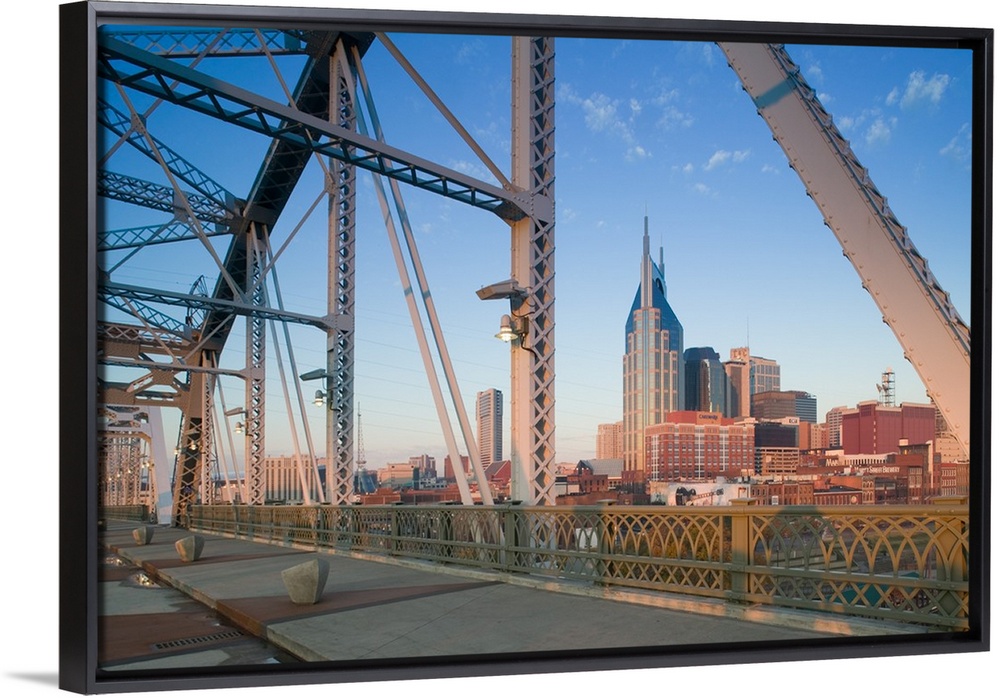 <p>Tennessee, Nashville, Downtown from Shelby Street Bridge at Dawn.</p>