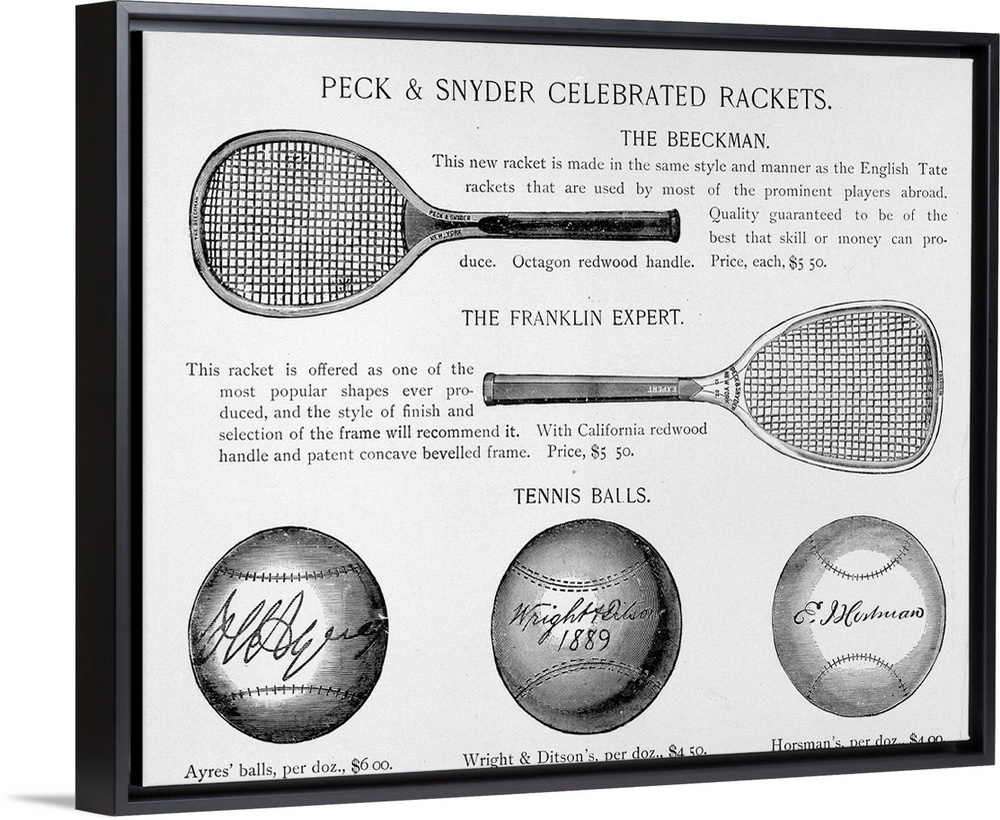 <p>Tennis rackets and balls. Undated engravings from a catalog.</p>