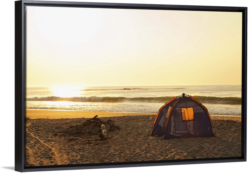 <p>Tent and Burned out Campfire on the Beach.</p>