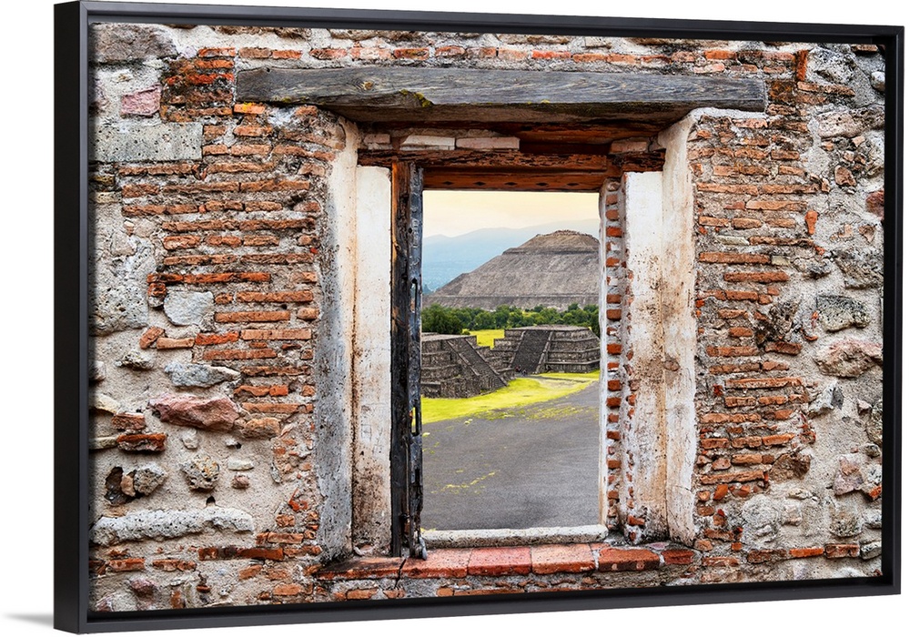 <p>View of the Teotihuacan Pyramids framed through a stony, brick window. From the Viva Mexico Window View.</p>
