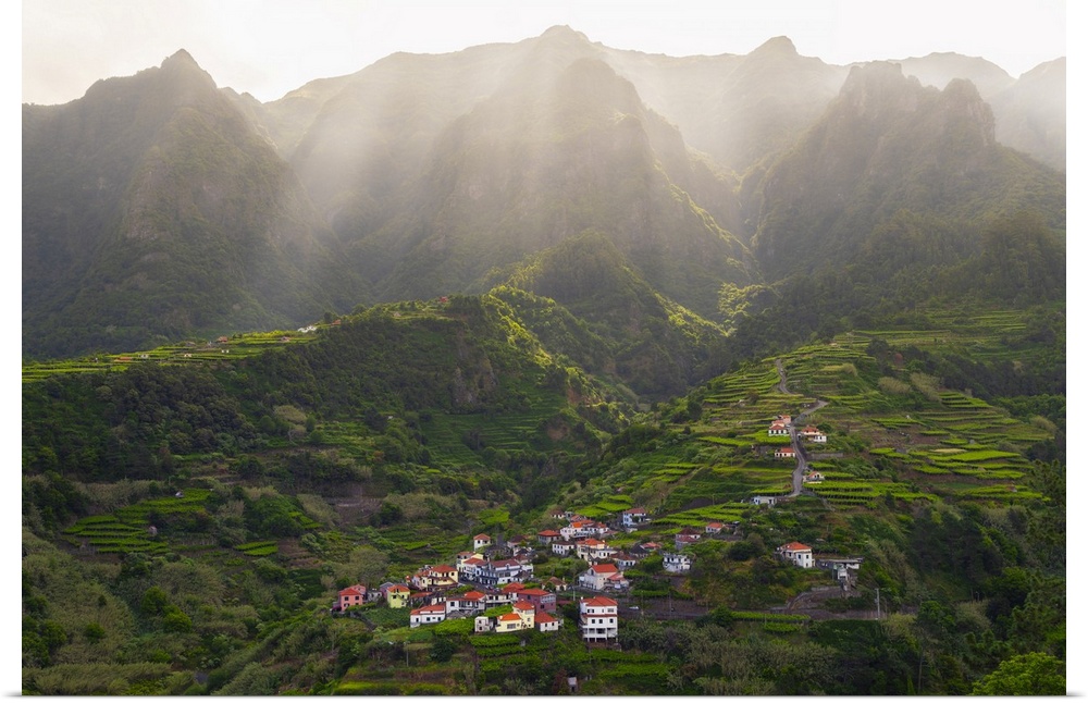 <p>Terracing and mountains at Sao Vicente during sunrise, Madeira, Portugal</p>