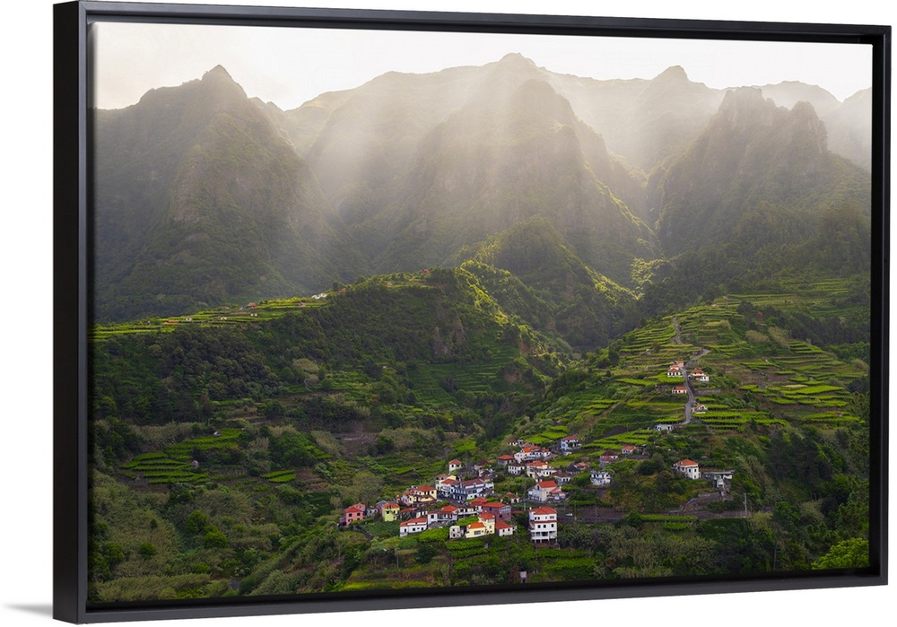 <p>Terracing and mountains at Sao Vicente during sunrise, Madeira, Portugal</p>