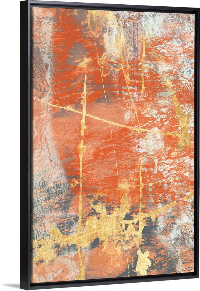 <p>Contemporary abstract painting in bold, rusty orange and gold with a weathered effect.</p>