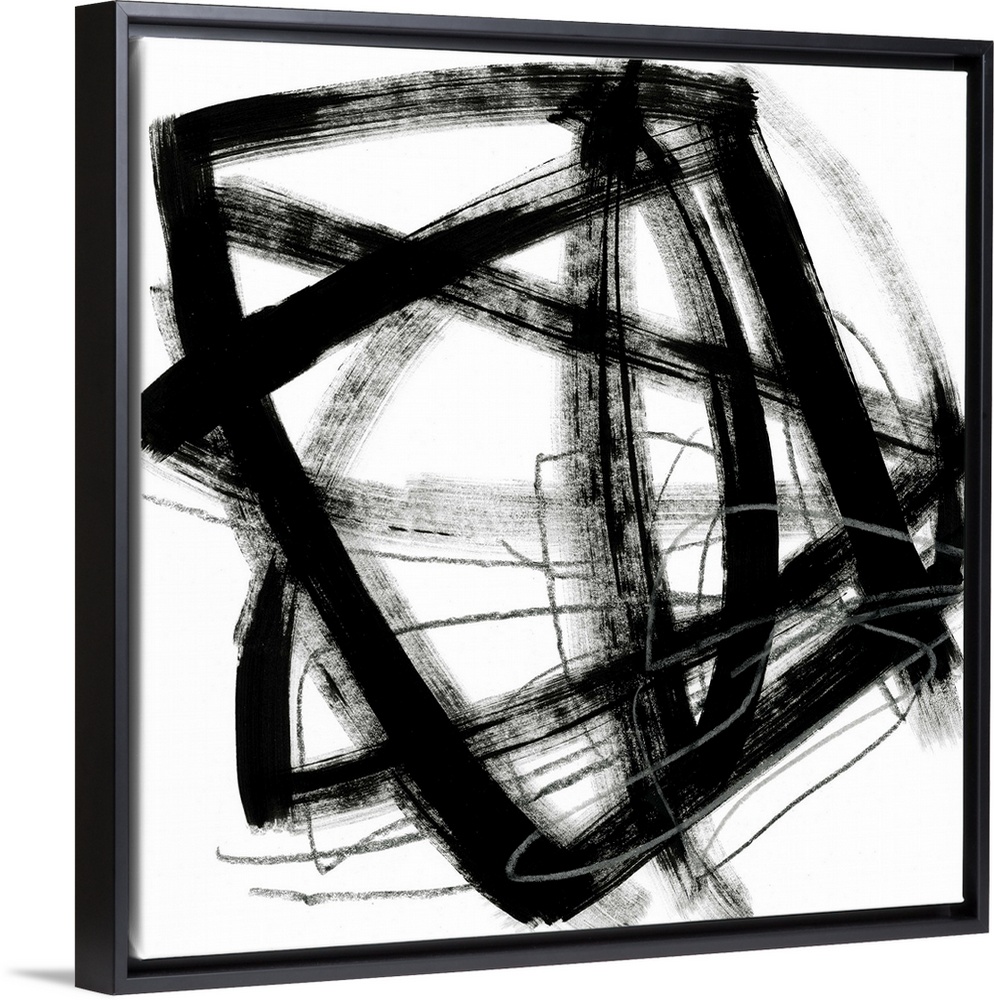 <p>Contemporary abstract painting using bold black contrasting against a stark white background.</p>