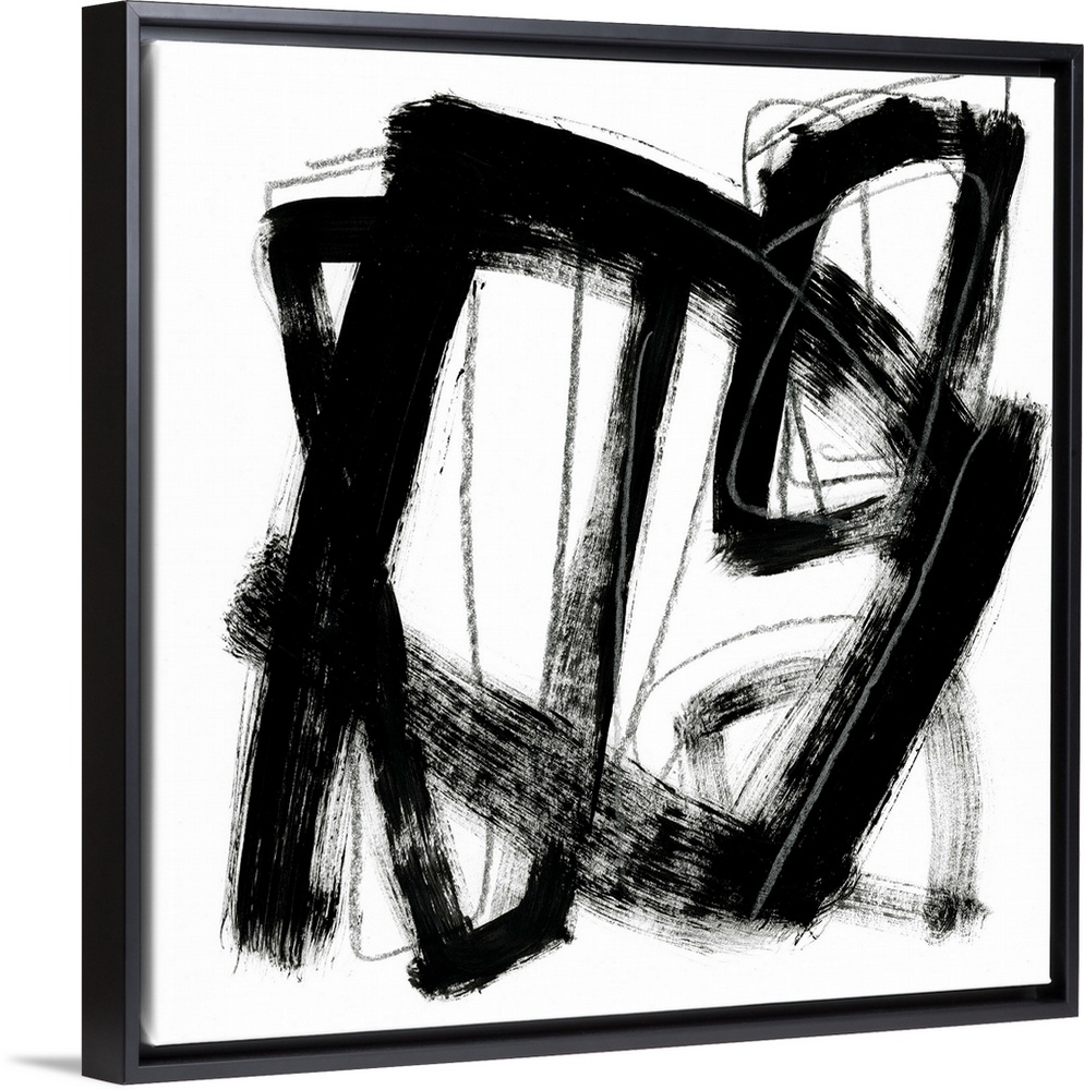 <p>Contemporary abstract painting using bold black contrasting against a stark white background.</p>