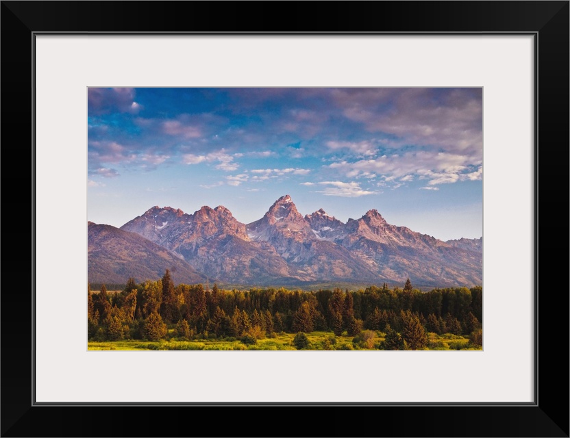 <p>Teton Front Range and Conifers at Sunrise, Antelope Flats, Grand Teton National Park, Wyoming.</p>