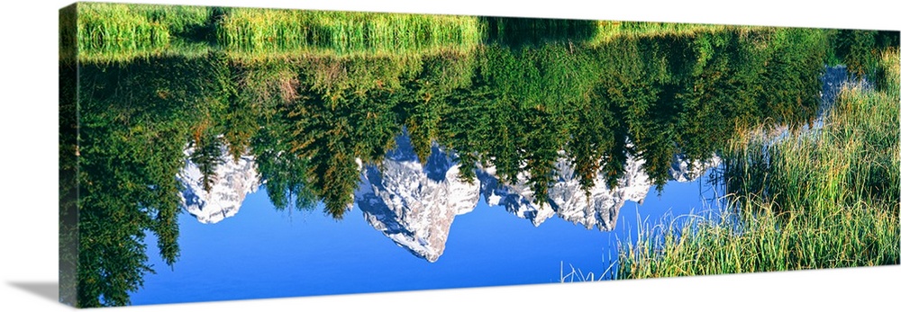 <p>Teton Range reflected in Moose Ponds, Grand Teton National Park, Wyoming, USA.</p>