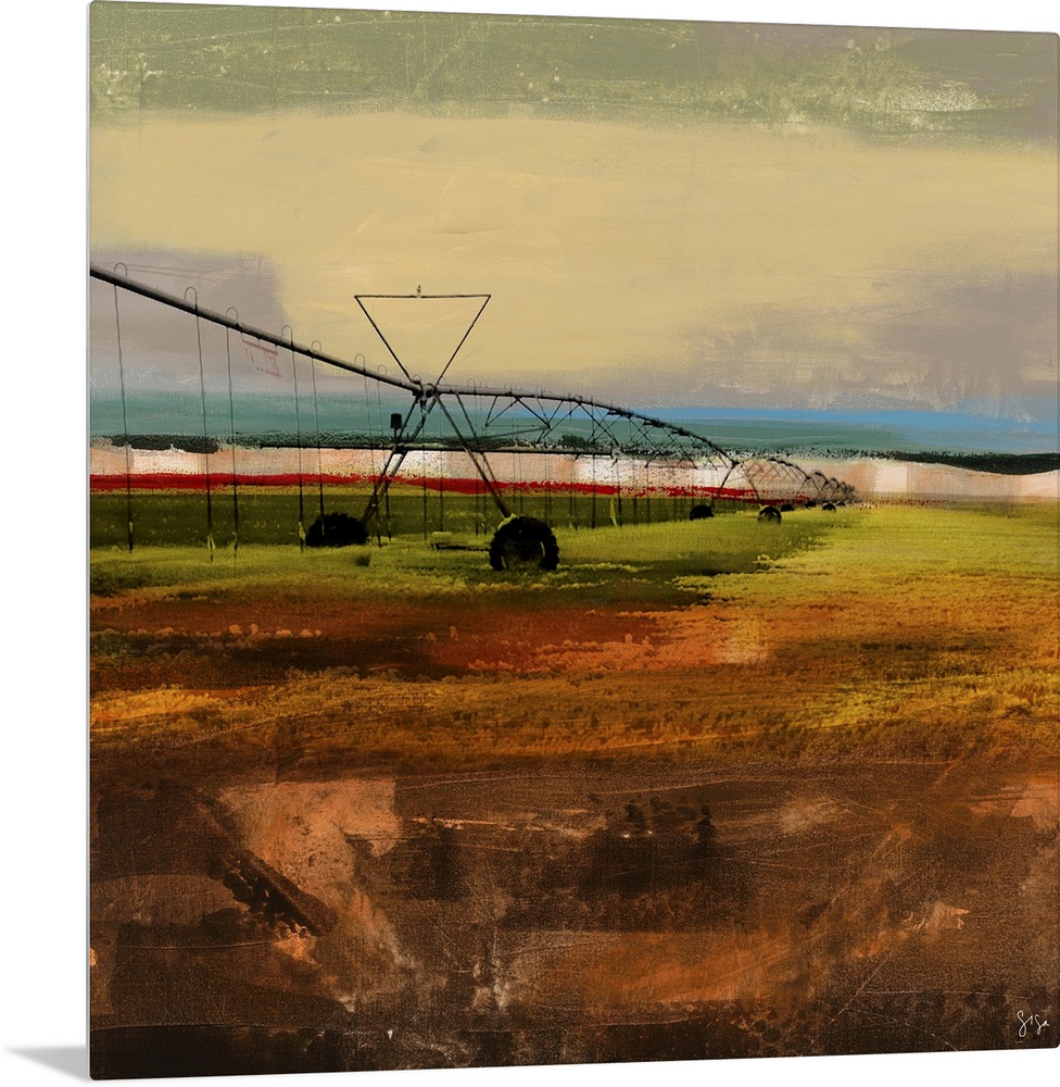 <p>Abstract artwork of farming watering device against a multi-layered and colored surrounding.</p>