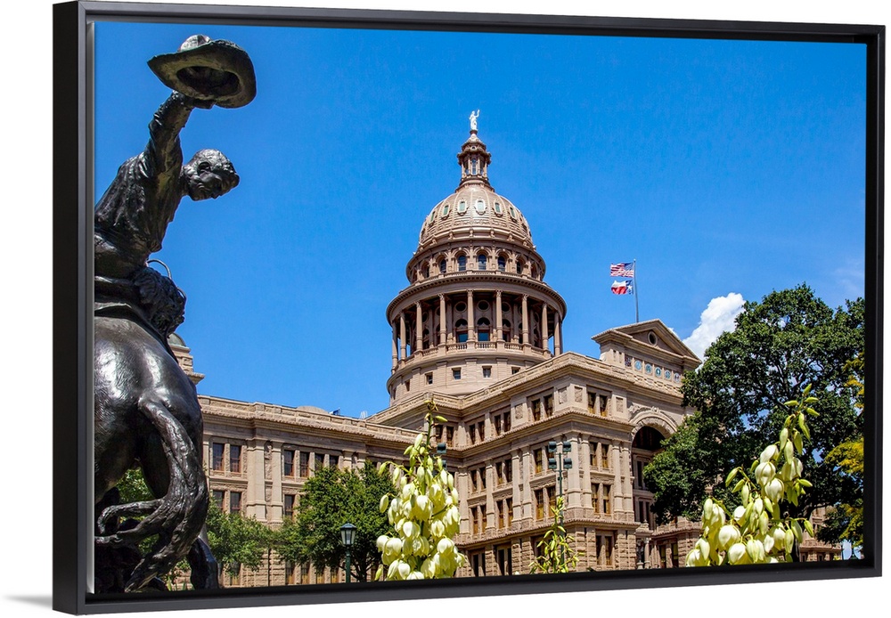 <p>Texas, Austin, Texas cowboy statue in front of Capital</p>