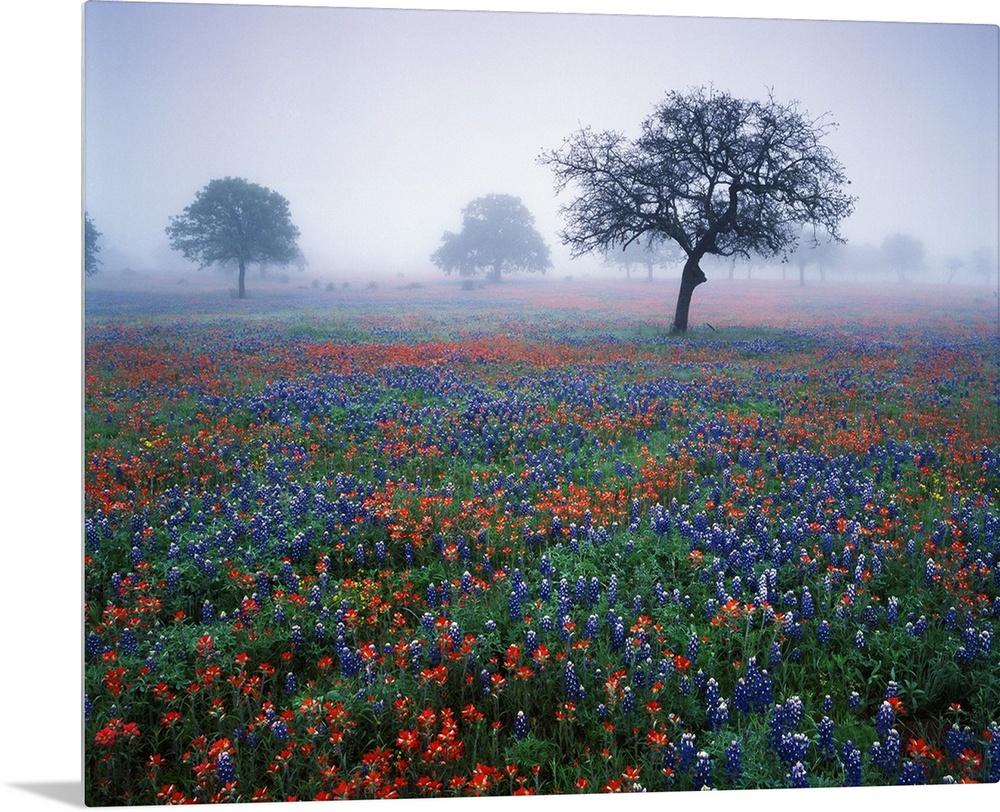 <p>USA, Texas, Hill Country, View of Texas paintbrush and bluebonnets flowers at dawn.</p>