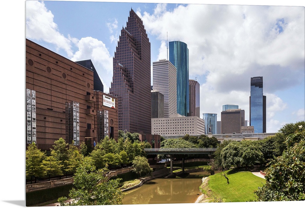 <p>Texas, Houston Theater District seen from Buffalo Bayou bridge and Sabine-to-Bagby Promenade</p>
