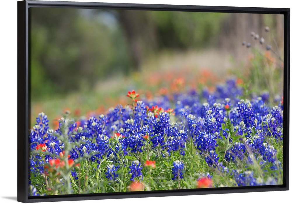 <p>Texas wildflowers in bloom along a dirt road in rural Texas.</p>