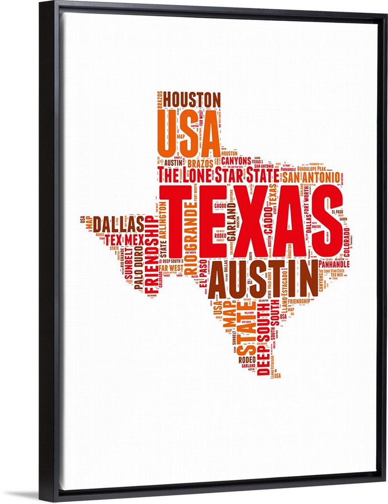 <p>Typography art map of the US state Texas.</p>
