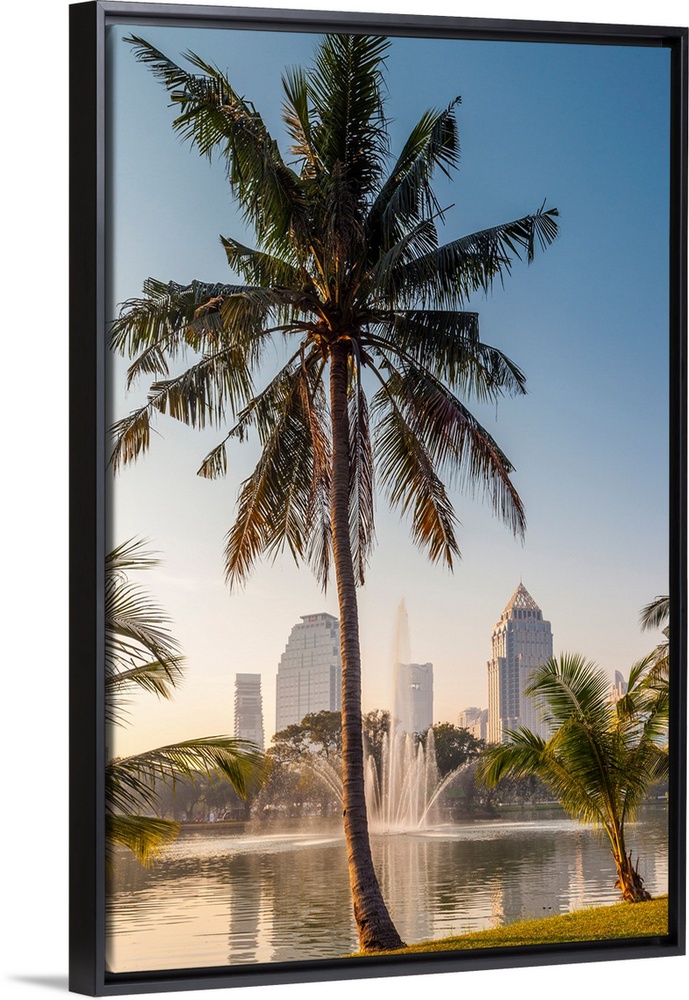 <p>Thailand, Bangkok, Lumphini Area, Lumphini Park, city skyline at dawn.</p>
