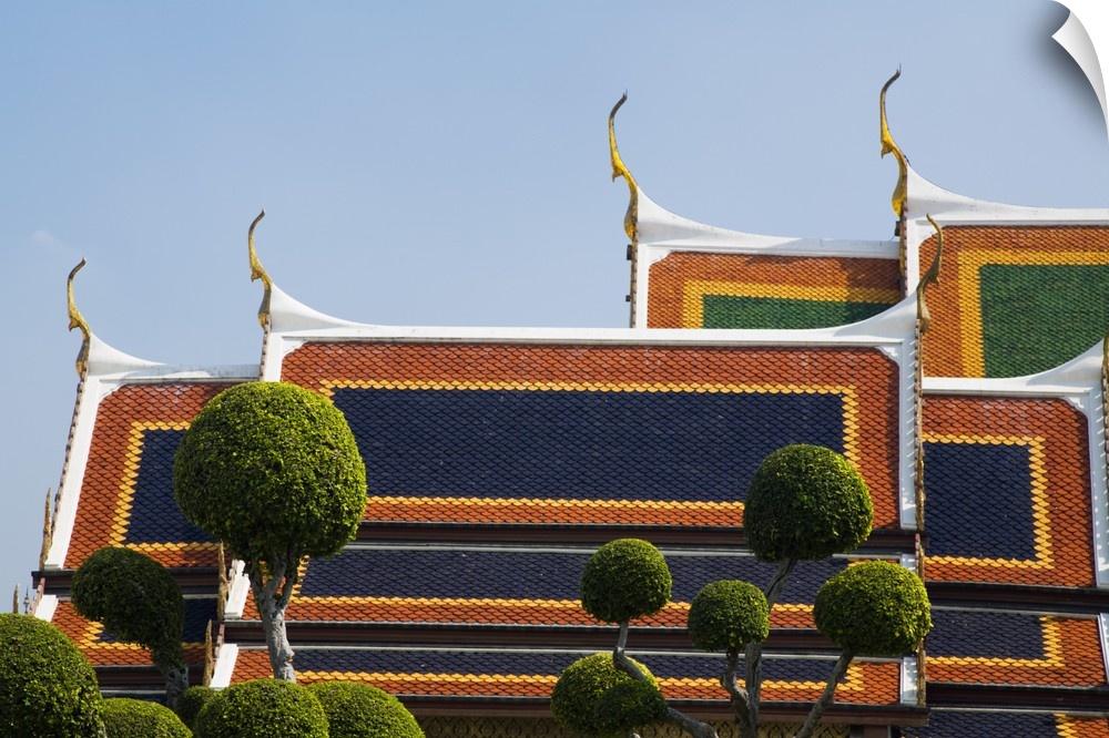 <p>Thailand, Bangkok. Temple roof detail at Wat Phra Kaew (Temple of the Emerald Buddha).</p>