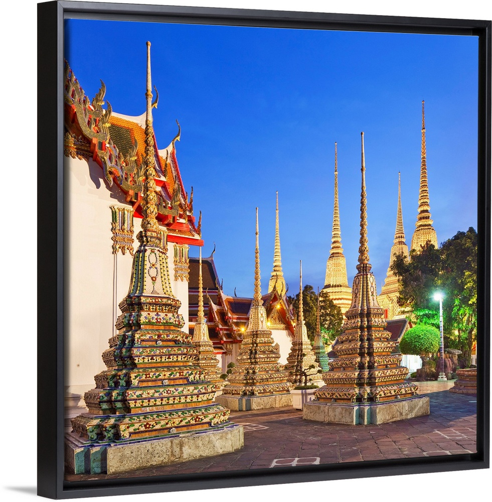 <p>Thailand, Central Thailand, Bangkok, Wat Pho, Temple of the Reclining Buddha illuminated at dusk.</p>
