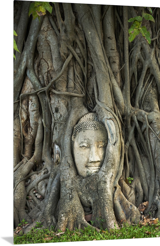 <p>Thailand, Phra Nakhon Si Ayutthaya, Ayutthaya, Wat Mahathat, Buddha image in roots of Bodhi tree. UNESCO World Heritage site.</p>