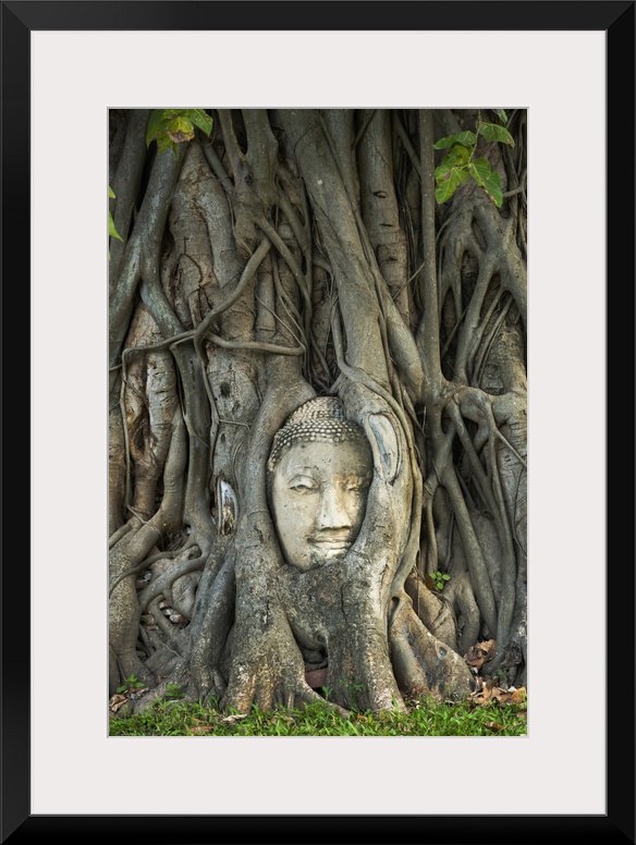 <p>Thailand, Phra Nakhon Si Ayutthaya, Ayutthaya, Wat Mahathat, Buddha image in roots of Bodhi tree. UNESCO World Heritage site.</p>