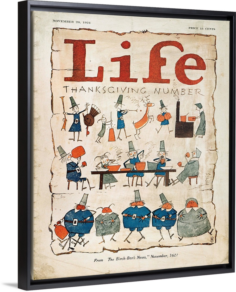 <p>'Thanksgiving Number,' from 'The Birch-Bark News,' November, 1621. Life Magazine cover, 1924.</p>