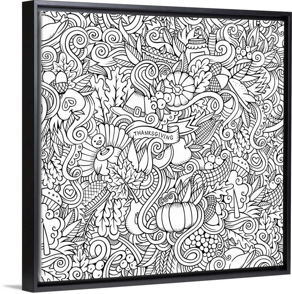 <p>A series of Thanksgiving and harvest-themed objects, such as pumpkins, leaves, and turkeys. Perfect for Coloring Canvas.</p>